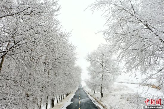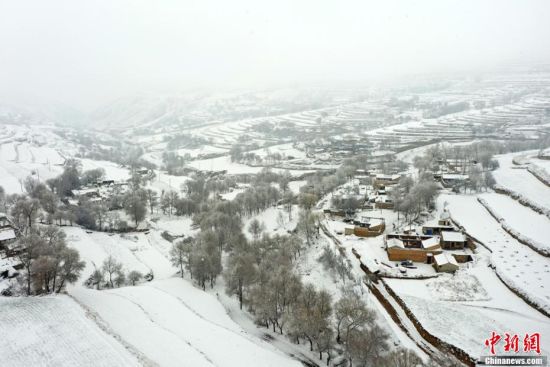 原標題:甘肅定西黃土高原現(xiàn)雪凇奇觀