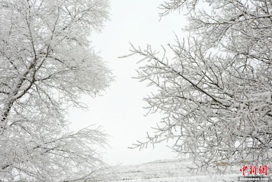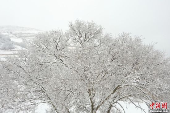 4月3日,甘肅省定西市安定區(qū)石泉鄉(xiāng)山梁上的雪凇將黃土地裝扮得分外嬌艷,枝頭雪凇晶瑩剔透,整片山區(qū)美如仙境,令人嘆為觀止。 王金生 攝