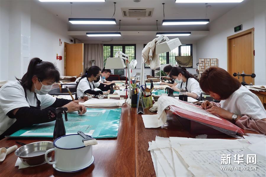 天一閣藏品修復(fù)部目前有修復(fù)師14人,每年約修復(fù)古籍14000余頁。據(jù)介紹,修復(fù)一冊(cè)古籍通常需要1至2個(gè)月,有的甚至需要1年以上。 新華社記者 鄭夢(mèng)雨 攝