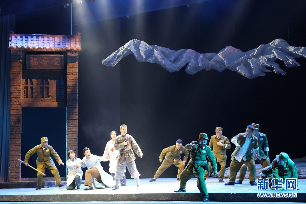 5月30日晚,大型秦腔現(xiàn)代戲《肝膽祁連》在蘭州音樂廳精彩上演。《肝膽祁連》以真實(shí)的歷史故事改編,講述了愛國民主人士高金城營救紅西路軍戰(zhàn)士的感人故事。新華網(wǎng)發(fā)(王晶晶 攝)