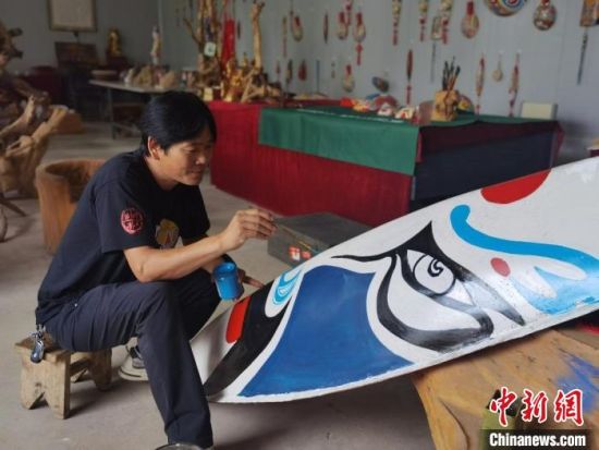 取材、挖空、刨光、勾線、著色……經(jīng)過這些步驟,一個(gè)馬勺臉譜就完成了。馬勺臉譜由中國民間社火臉譜演化而來,已有數(shù)千年歷史,系列產(chǎn)品主要包括馬勺臉譜、梭子臉譜、鏟子臉譜、木锨臉譜等。9月初,甘肅省隴南市徽縣馬勺臉譜的省級(jí)傳承人馬龍,依舊在工作室創(chuàng)作。今年47歲的他,堅(jiān)守馬勺臉譜的制作技藝已有20余載,不僅傳承了社火臉譜和京劇臉譜的古韻,而且創(chuàng)新了貼金、刻繪等技藝,在傳統(tǒng)中融入了現(xiàn)代造型和色彩元素。它的作品在網(wǎng)絡(luò)引起熱議:“臉譜畫在梭子上,厲害了。”“寶藏非遺,期待下次打卡。”