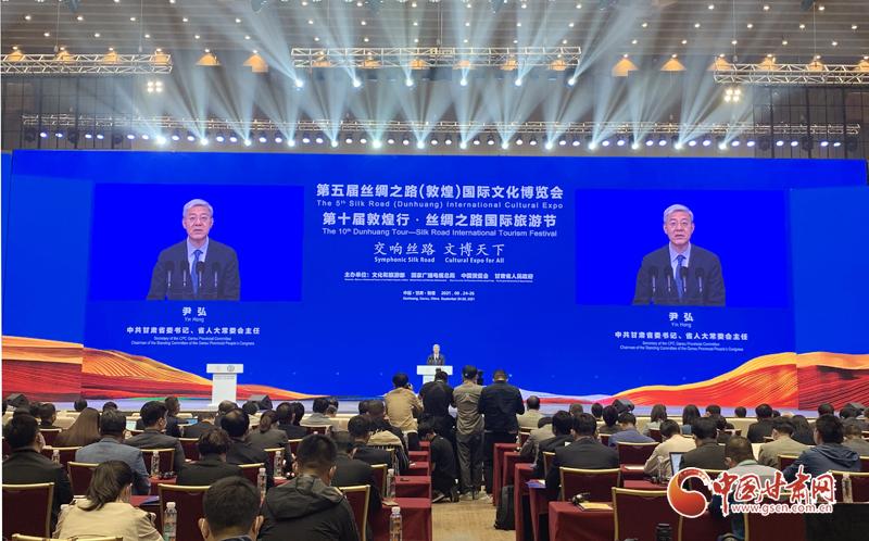 中國甘肅網(wǎng)9月24日訊(本網(wǎng)記者  宋芳科 楊亞楠 張振國)9月24日上午,第五屆絲綢之路(敦煌)國際文化博覽會和第十屆敦煌行·絲綢之路國際旅游節(jié)開幕。本屆“一會一節(jié)”由文化和旅游部、國家廣播電視總局、中國國際貿(mào)易促進(jìn)委員會、甘肅省人民政府共同主辦,以“交響絲路 文博天下”為主題,旨在進(jìn)一步加強“一帶一路”人文交流的官方合作和民間往來,增進(jìn)共建“一帶一路”國家的文化認(rèn)同。中共中央政治局委員、中央書記處書記、中宣部部長黃坤明以視頻方式發(fā)表主旨演講。