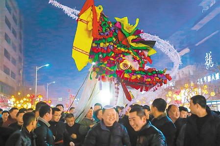 西和縣傳統(tǒng)“老龍”社火耍起來。新甘肅·甘肅日報通訊員 張春年