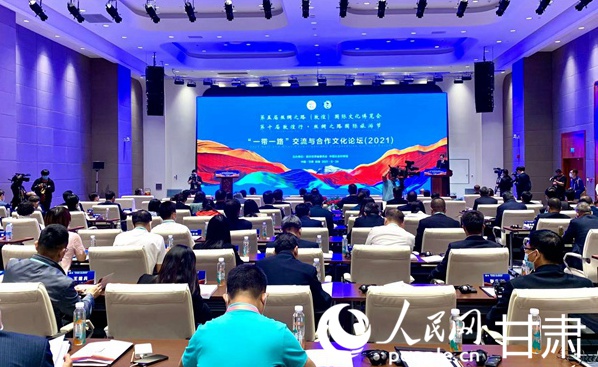 第五屆絲綢之路(敦煌)國際文化博覽會(huì)“一帶一路”交流與合作文化論壇(2021)在敦煌國際會(huì)展中心舉行。人民網(wǎng) 王文嘉攝