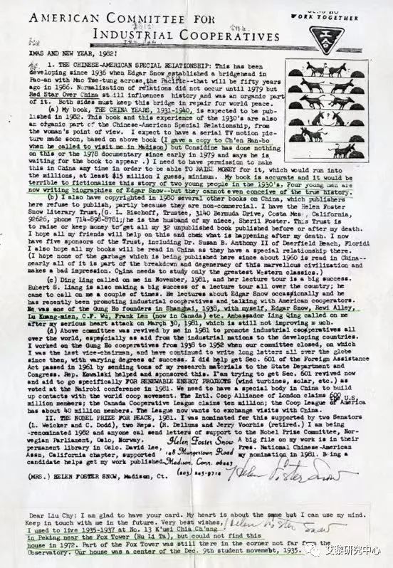 ?。ê?middot;斯諾的工合美國委員會信箋)
