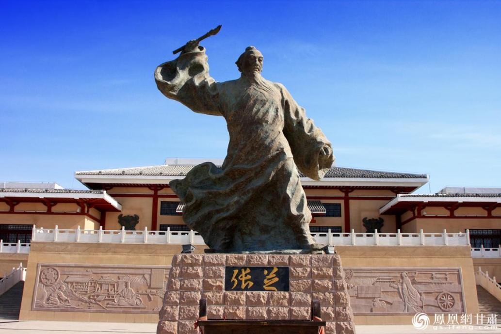 張芝雕塑。揮舞著如椽大筆,頓覺滿紙風動,氣壯山河。瓜州縣委宣傳部供圖