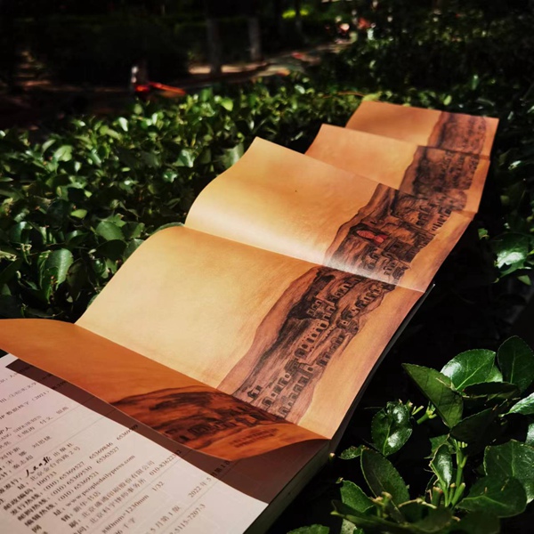 特別值得一提的是,曾作為敦煌“文化守望者”的90后插畫(huà)師陳夢(mèng)楚,依據(jù)歷史資料為該書(shū)手繪原長(zhǎng)達(dá)3.4米的全景圖,呈現(xiàn)莫高窟南區(qū)歷史圖景。這也是青年一代致敬莫高窟、致敬敦煌前輩的藝術(shù)表達(dá)。