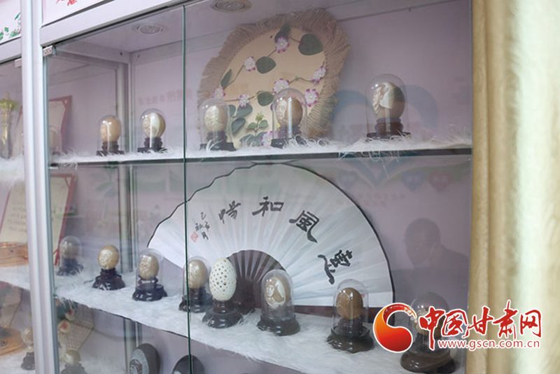 自2018年開始,蘭州新區(qū)新安社區(qū)為劉財(cái)萬的蛋雕作品專設(shè)了社區(qū)展柜,劉財(cái)萬可以為前來參觀的人們講解作品內(nèi)涵、展示創(chuàng)作過程。對(duì)劉財(cái)萬來說,這不但可以更好傳播蛋雕文化,也是分享自己生命體悟、生活方式的一個(gè)出口。