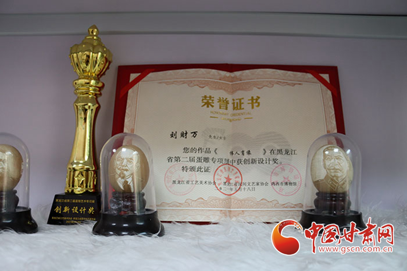 記者在采訪中注意到,社區(qū)的展柜一角擺放著不少獲獎(jiǎng)證書,其中一張是在2021年的全國蛋雕專項(xiàng)展上,為劉財(cái)萬作品《偉人肖像》頒發(fā)的創(chuàng)新設(shè)計(jì)獎(jiǎng)證書。“目前正在為全國蛋雕藝術(shù)聯(lián)展作準(zhǔn)備”,當(dāng)記者問起下一步打算時(shí),劉財(cái)萬顯得信心十足。