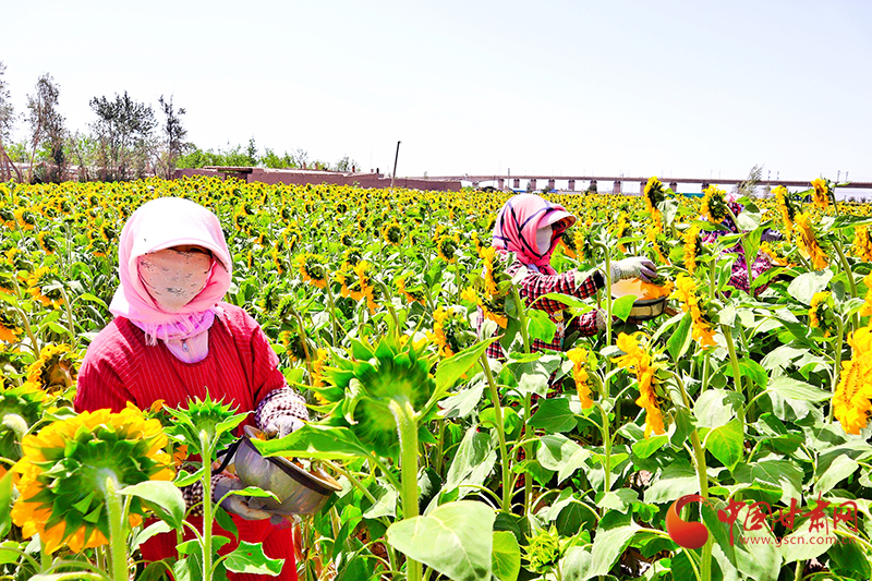 “今年,我們長莊村結(jié)合高標準農(nóng)田建設(shè)項目的實施,年初流轉(zhuǎn)土地一千多畝,與合作社合作引進葵花制種一千多畝,這既增加了我們村集體的經(jīng)濟收入,而且就近吸納勞動力,每天有五六十人在葵花基地打工,滿足了老百姓就地務(wù)工的需求。”臨澤縣新華鎮(zhèn)長莊村黨支部書記宋洋說。