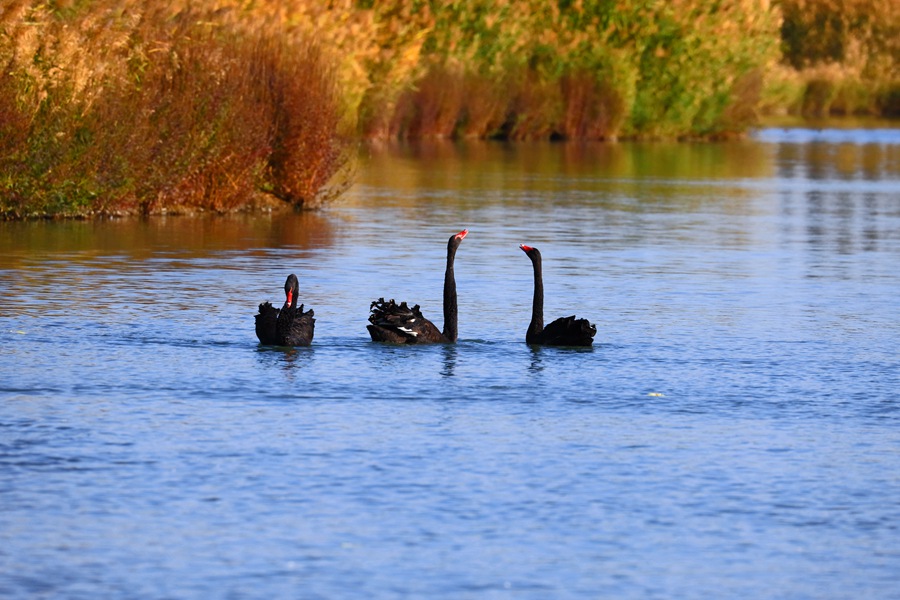 人民網(wǎng)蘭州10月13日電 (記者 王文嘉)金秋十月好光景,位于祁連山下的張掖國家濕地公園秋色正濃,成群的天鵝聚集在一起游弋嬉戲、歡騰跳躍,舞出了濕地如畫的秋天,成為了一道靚麗的風(fēng)景線。