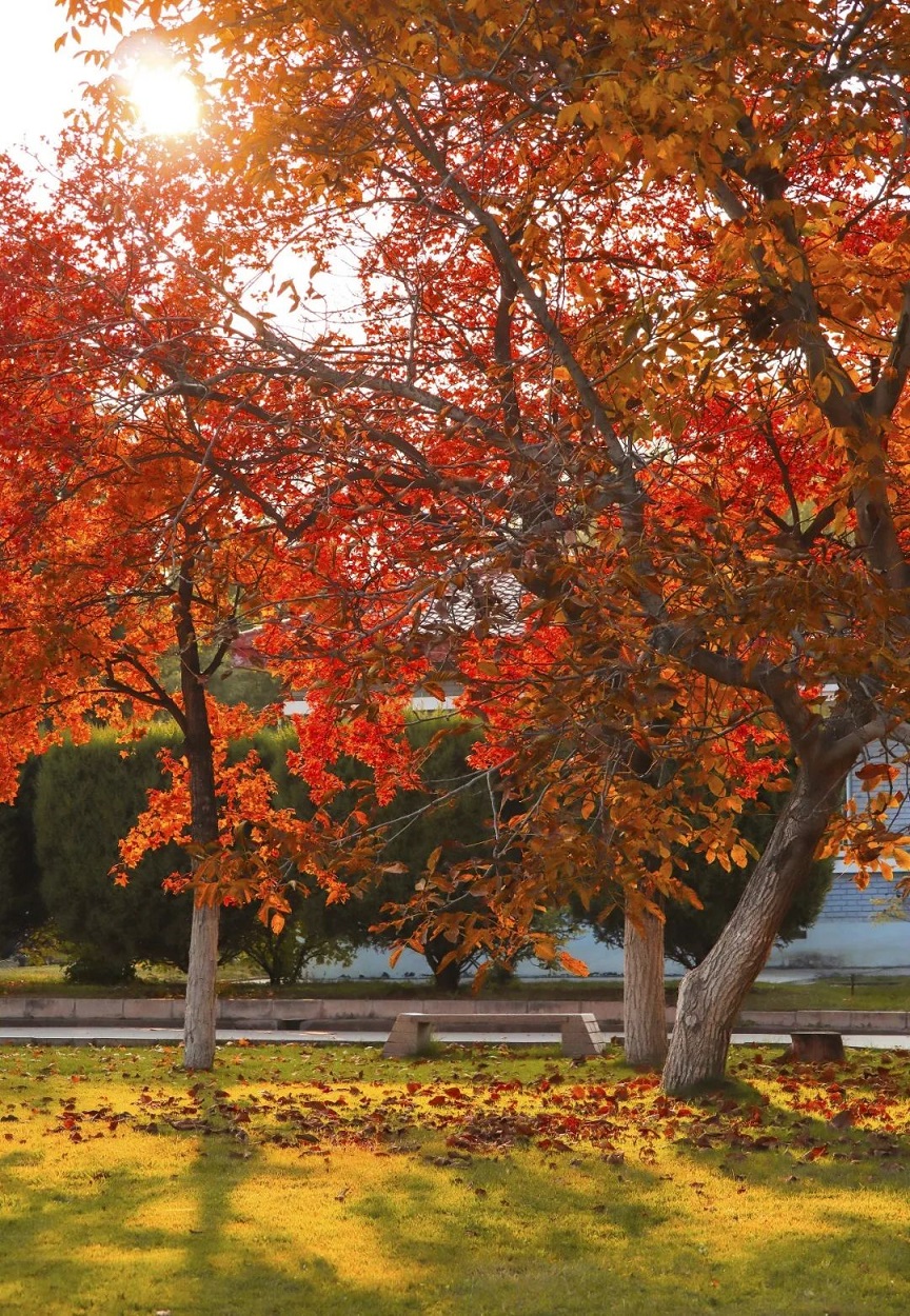 這個季節(jié)的金城高校校園,也染上了一層濃濃秋意,明朗火紅,澄澈暖黃,肆意熱烈,芬芳醉人!