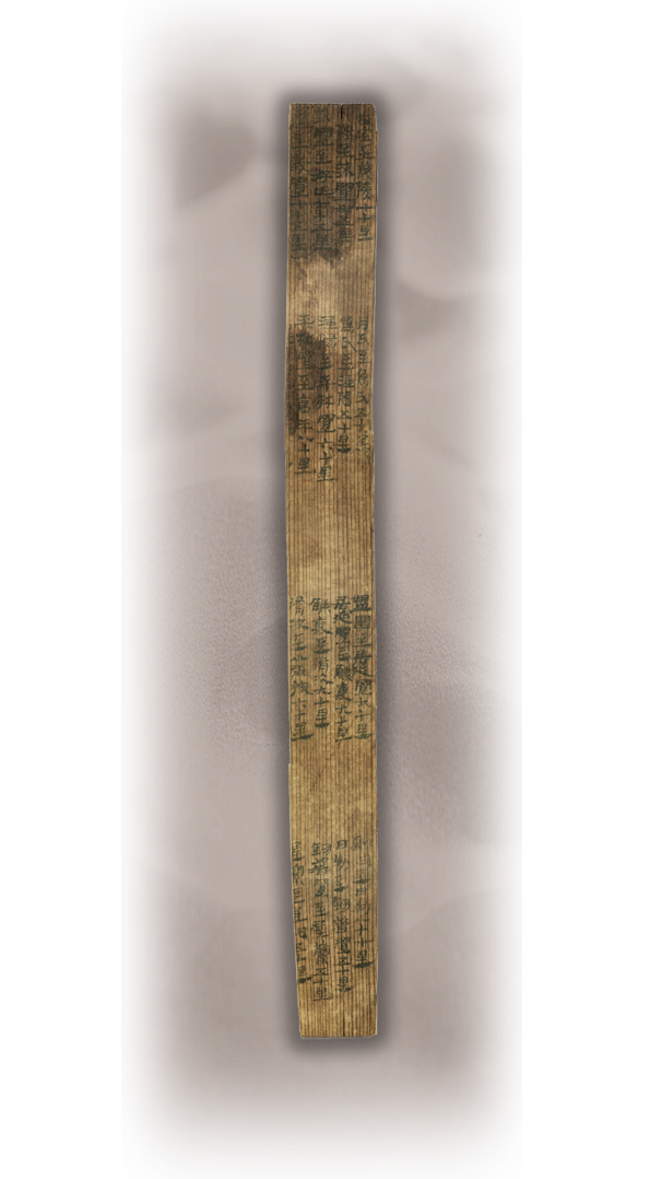 居延里程簡,漢代,國家一級文物,發(fā)現(xiàn)于1974年,出土于居延破城子遺址。簡為松木制作,長22.9厘米,寬2.1厘米,通簡從上至下分四欄,每欄從右至左分四行(列)抄寫,計17行,地縣驛置名20個。