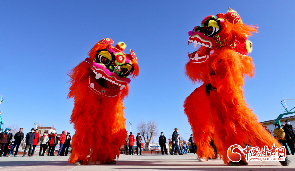 1月9日,甘肅省張掖市甘州區(qū)花寨鄉(xiāng)的社火表演隊正在文化廣場上加緊排練。
