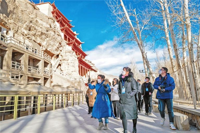 新年伊始,敦煌市舉行了“2022年-2023年冬春旅游優(yōu)惠政策發(fā)布暨敦煌文化研學(xué)季”活動(dòng)啟動(dòng)儀式,莫高窟推出門票半價(jià)、開放洞窟由8個(gè)增至12個(gè)并配資深講解員講解,多項(xiàng)優(yōu)惠措施吸引了眾多游客來敦煌觀光游覽。