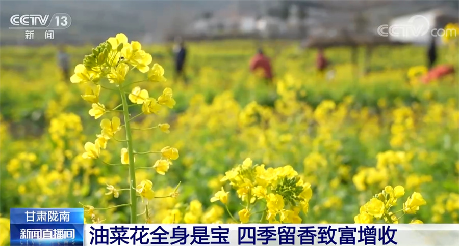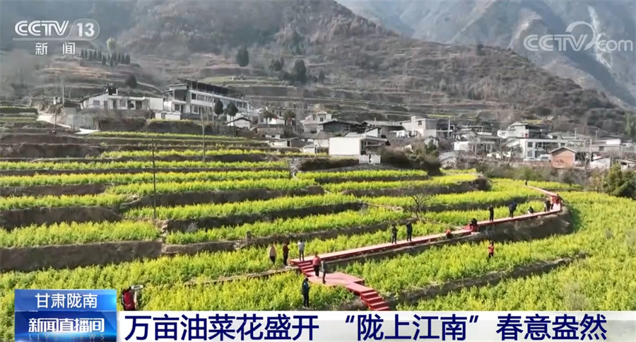 央視網(wǎng)消息:甘肅省地處西北腹地,但在其最南端的隴南市,山間的油菜花從臘月開始就逐漸開放,如今已經(jīng)進(jìn)入了盛花期,一派欣欣向榮的景象,給西北的初春增添了蓬勃生機(jī)。