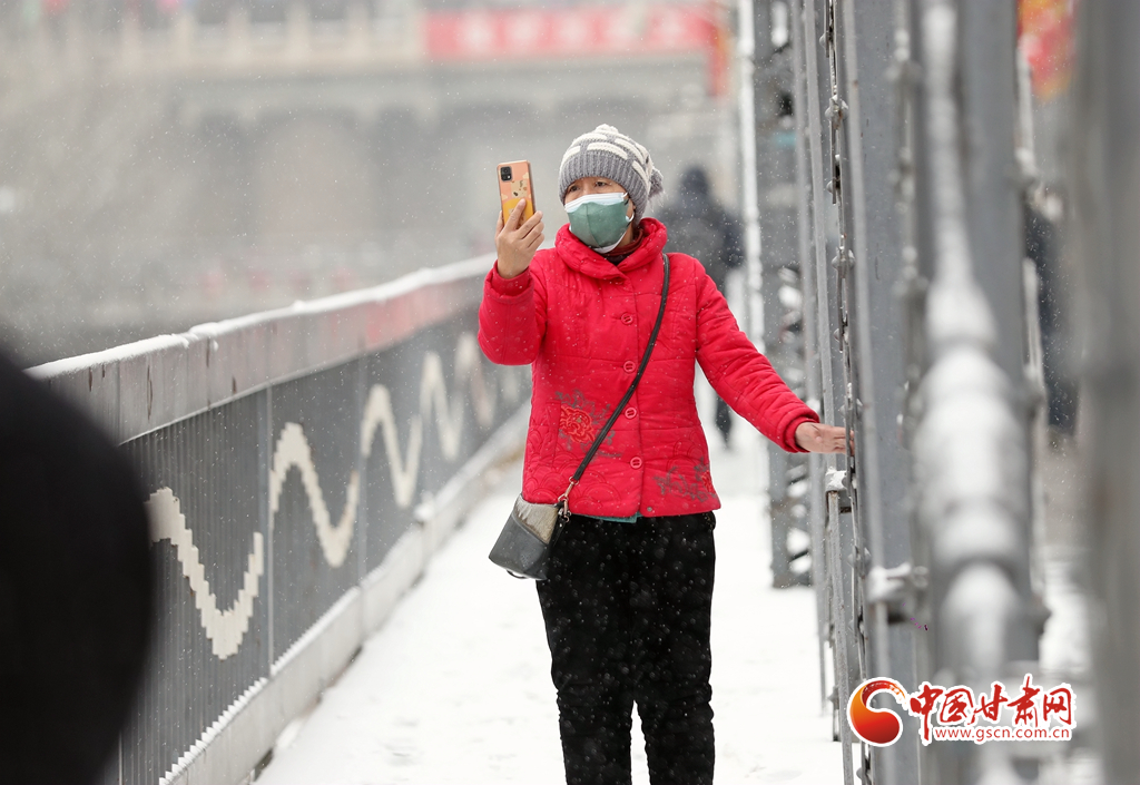 2月8日,受冷空氣影響,省城蘭州迎來兔年首場降雪天氣,伴隨著降雪而來的降溫難擋人們的熱情,許多市民紛紛走出家門,踏雪賞景。