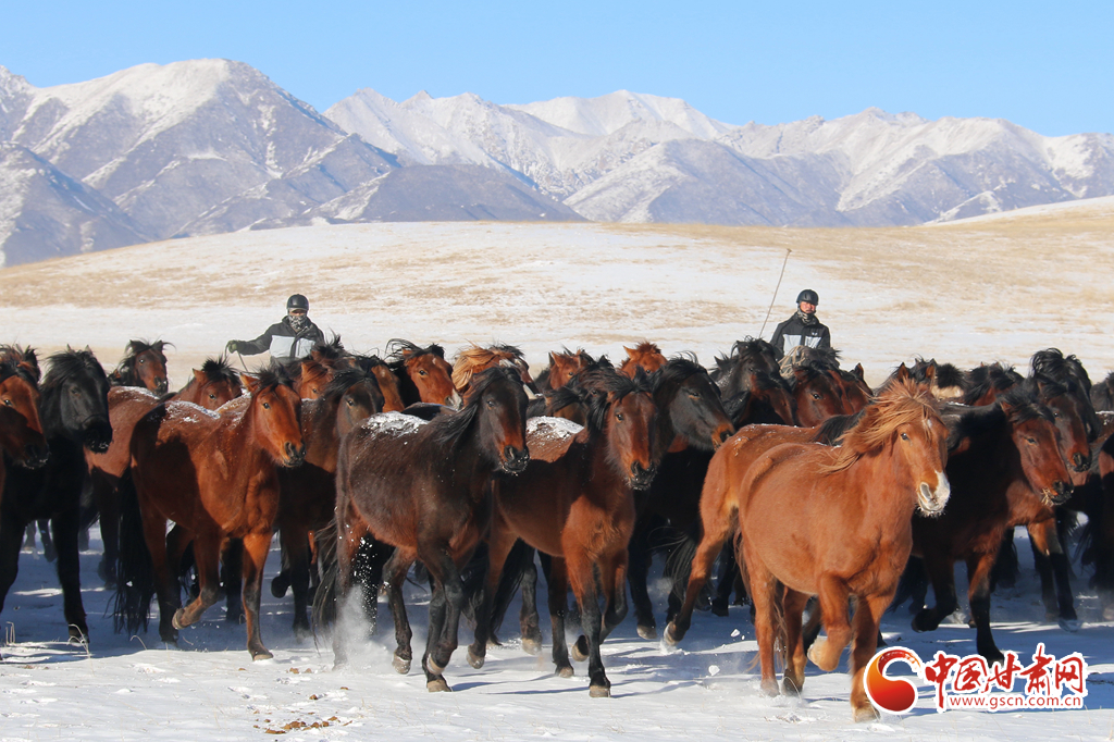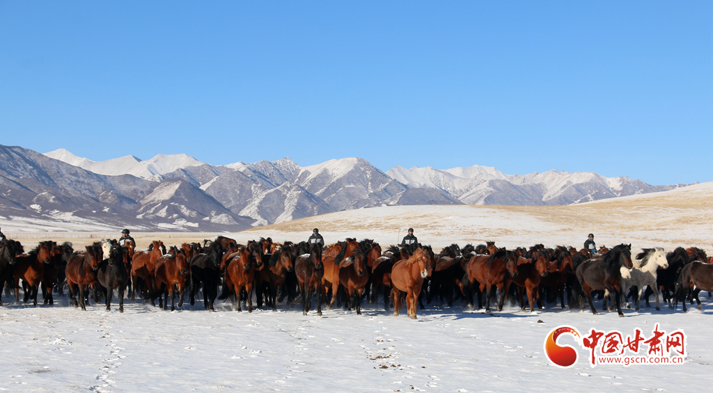 2月9日,在甘肅山丹馬場(chǎng),上演了萬(wàn)馬奔騰的壯觀景象,健壯的馬蹄濺起陣陣飛雪,實(shí)屬震撼。
