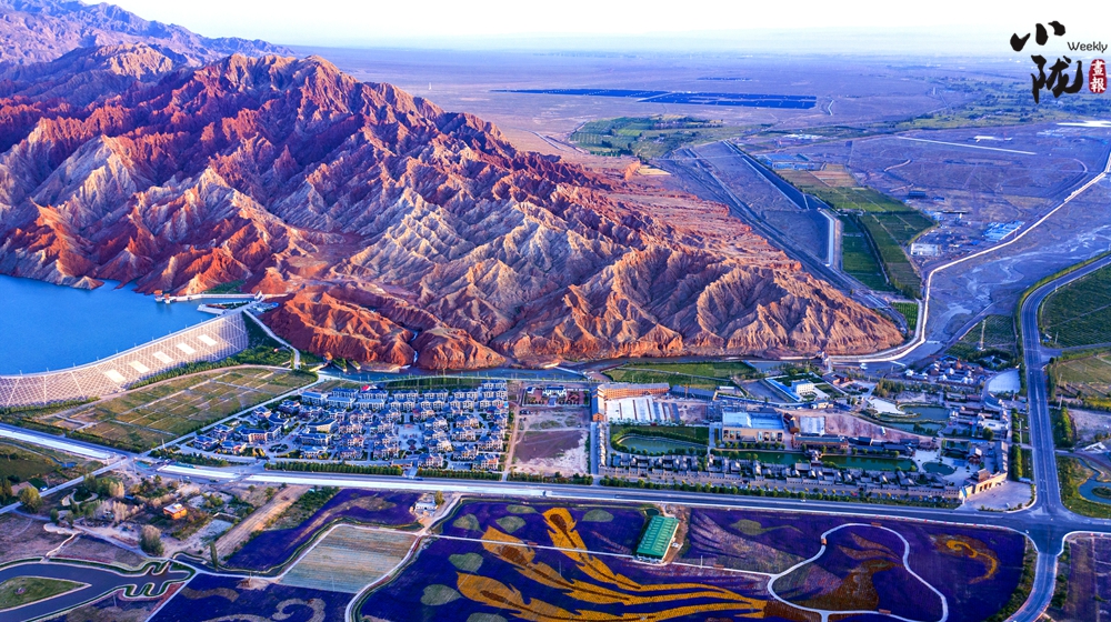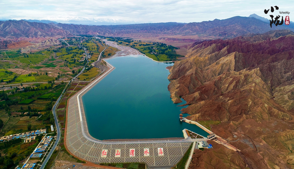 紅山灣水庫(kù)與丹霞國(guó)家地質(zhì)公園山水相映,展現(xiàn)了“戈壁水鄉(xiāng)”的生態(tài)和諧新形象。