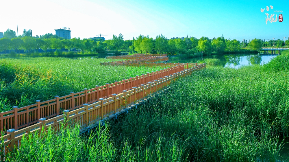 臨澤的大街小巷,“見(jiàn)縫植綠”的立體綠化讓城市綠意盎然。人行步道沿湖蜿蜒,湖水清澈潔凈,岸邊美景倒映湖中,一幅繪著水美之鄉(xiāng)的秀美畫(huà)卷躍然眼前。