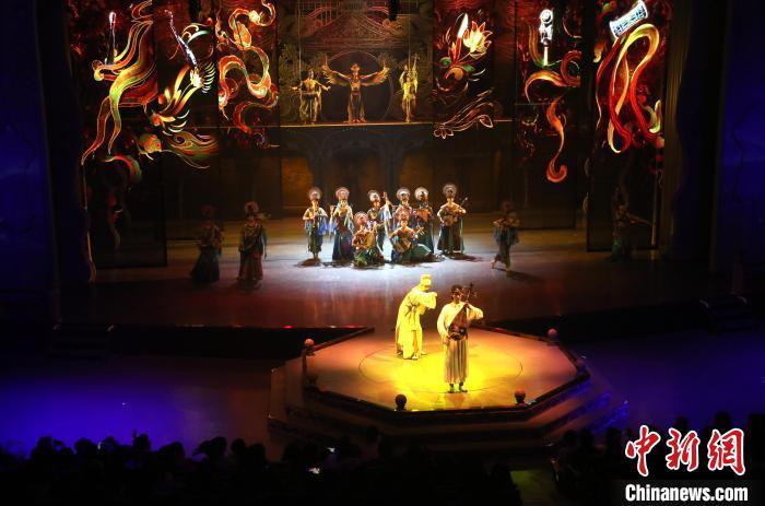 2月15日晚,游客在觀看全球首部洞窟式沉浸體驗(yàn)劇《樂動(dòng)敦煌》。張曉亮 攝