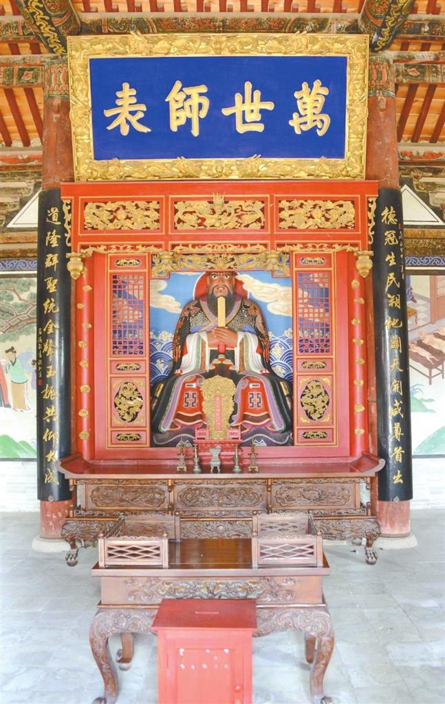 在秦安文廟塑有孔子塑像,他頭戴十二旒冠冕,身穿十二章王服,手捧鎮(zhèn)圭,儼然一副古代帝王相,這也反映了世人對孔子的極大尊崇。