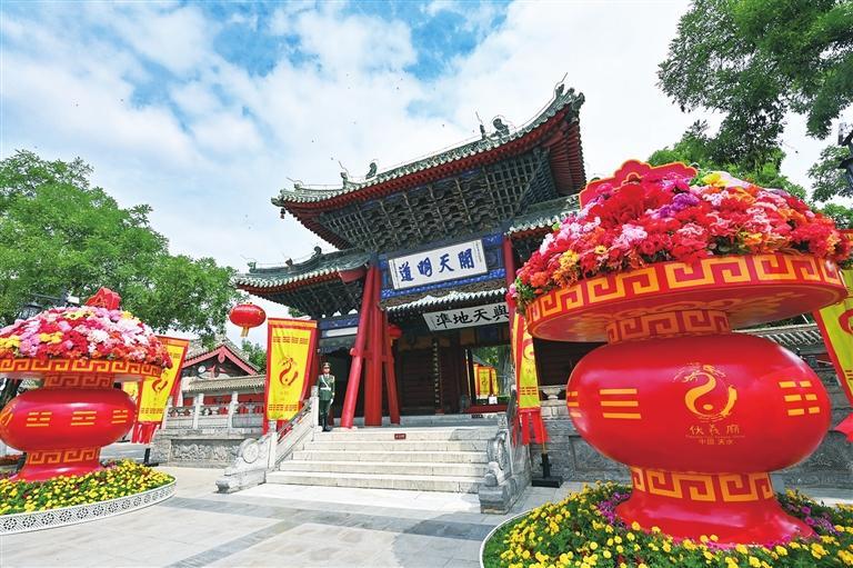 多年來,天水市圍繞華夏文明傳承創(chuàng)新區(qū)和伏羲始祖文化傳承創(chuàng)新區(qū)建設(shè),不斷加強(qiáng)歷史文化遺產(chǎn)保護(hù),伏羲廟被列入全國重點(diǎn)文物保護(hù)單位名單,圪垯川遺址入選2021年“考古中國”重大項(xiàng)目,“太昊伏羲祭典”被列入首批國家級非物質(zhì)文化遺產(chǎn)保護(hù)名錄,“秦安女媧祭典”被列入第三批國家級非物質(zhì)文化遺產(chǎn)代表性項(xiàng)目名錄。圍繞1家5A級景區(qū)、7家4A級景區(qū)、18家3A級景區(qū),打造羲皇故里尋根祭祖游等7條特色線路滿足不同游客需求。圍繞伏羲文化題材,創(chuàng)作開發(fā)800余種文創(chuàng)產(chǎn)品和旅游商品,注冊113個(gè)伏羲文化相關(guān)商標(biāo)、16項(xiàng)相關(guān)專利。先后創(chuàng)作推出《天河熱土》《說伏羲》《天水千古秀》《夢回大地灣》《伏羲頌》《祖脈天水》《伏羲創(chuàng)世》等一大批優(yōu)秀作品。全市文藝家共獲得國家級文藝創(chuàng)作獎(jiǎng)項(xiàng)192個(gè)、省級重點(diǎn)文藝創(chuàng)作獎(jiǎng)項(xiàng)296個(gè)。伏羲文化已成為甘肅省獨(dú)具特色的重要文化品牌,為促進(jìn)文化和旅游深度融合發(fā)揮了重要作用。