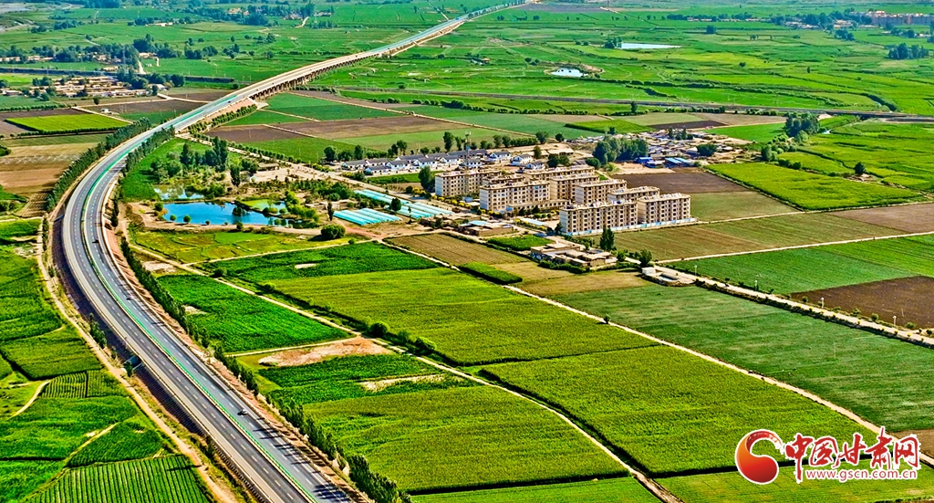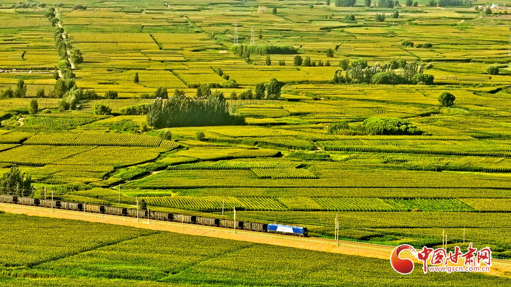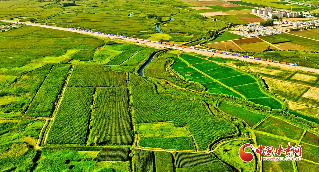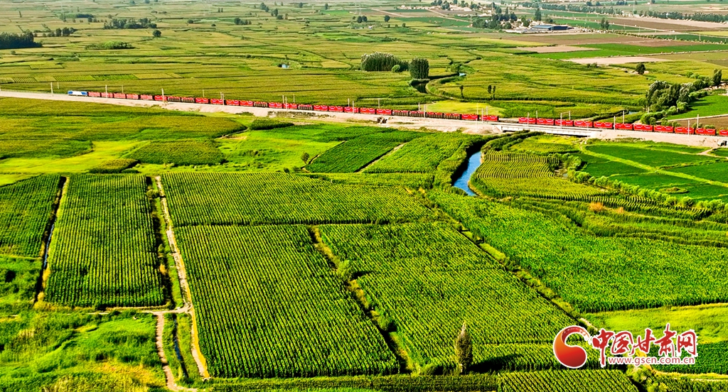 盛夏時(shí)節(jié),位于祁連山下的甘肅省張掖市甘州區(qū)烏江鎮(zhèn)萬(wàn)畝即將收獲的制種玉米生長(zhǎng)旺盛,宛若鋪了一層綠色的“巨毯”。綠油油的供港蔬菜基地上,種植農(nóng)戶們正忙碌采摘。田間林木,穿境而過的蘭新鐵路大動(dòng)脈和S237(蒙甘--青海)一級(jí)公路上,一列列火車、一輛輛汽車疾馳,勾勒出一幅幅美麗的田園生態(tài)畫卷。