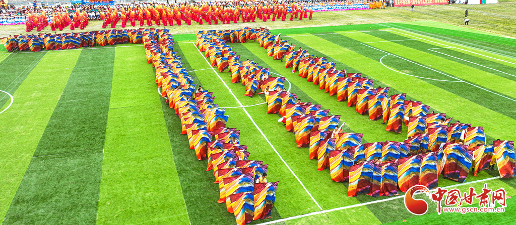 8月13日,甘肅省張掖市肅南裕固族自治縣萬名群眾身著節(jié)日的盛裝,齊聚在索朗格賽馬場上,展開主題為“感恩奮進七十載·同心共富新時代”的歌舞表演,感謝偉大的中國共產(chǎn)黨,謳歌美好的新生活。