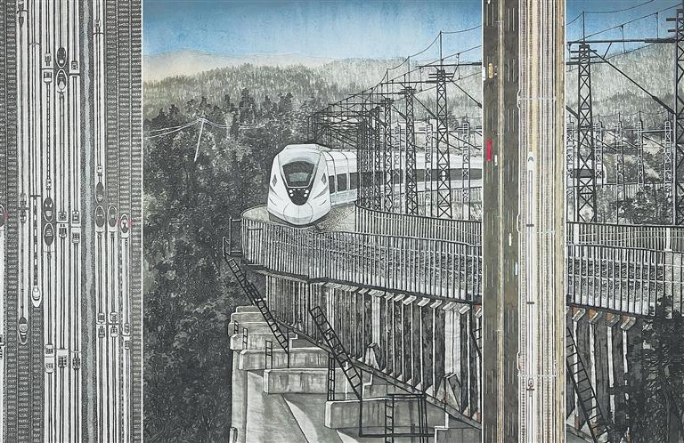 中國高鐵進(jìn)大山 (中國畫) 劉鋒