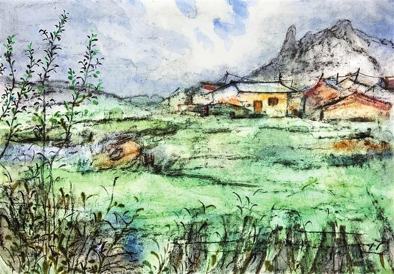平常在畫室里畫畫時(shí),喜歡用淡淡的墨色體會(huì)與宣紙碰撞所散發(fā)出的獨(dú)特墨韻。但是描摹西部,需要更加深厚、絢爛、豐富的色彩,才能表達(dá)我們的感受,寄予我們對這片土地的深情。離開故土,踏向遠(yuǎn)方,那份對家鄉(xiāng)的無盡思念和深深眷戀,是每一位游子心中難以言喻的情感,如同無形的紐帶,將我們與故鄉(xiāng)緊緊相連。這種情感,如同西北高原上那連綿不絕的山脈,既遙遠(yuǎn)又清晰,既冷峻又溫暖。