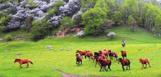 關(guān)山在很長(zhǎng)一段時(shí)間一直是中國(guó)重要的牧馬之地。據(jù)史書記載,大將衛(wèi)青、霍去病北征匈奴,曾從關(guān)山征集戰(zhàn)馬14萬(wàn)匹,足見當(dāng)時(shí)這里牧馬業(yè)的繁盛。然而現(xiàn)在,馬的蹤跡只是景區(qū)的點(diǎn)綴,要想看到萬(wàn)馬奔騰的場(chǎng)面,要去河西走廊的山丹軍馬場(chǎng)。