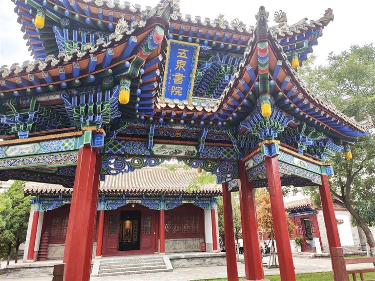 五泉書院靜靜地坐落在公園的北側(cè)。兩百多年的書院,時空的氣息里,仍然氤氳著古老的書香之靈動。眼前幻化出當年的那些身著長袍、儀態(tài)從容的學子們,按部就班地開始了新的一天。