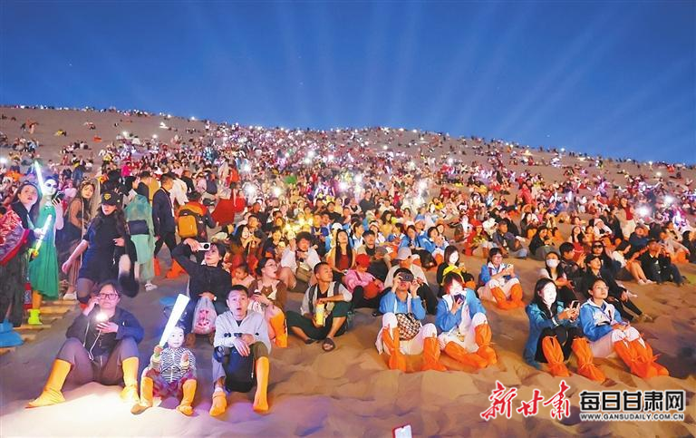 9月19日,游客在鳴沙山參與“萬人星空演唱會”。 新甘肅·甘肅日報記者 田蹊 馮樂凱