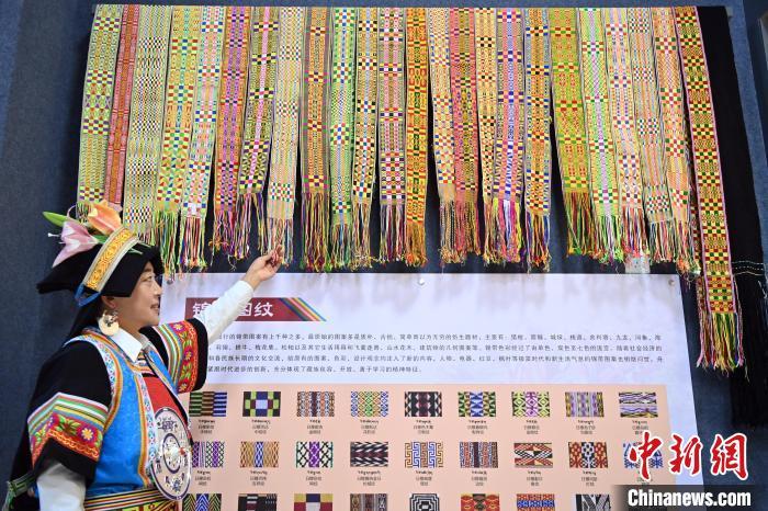 9月26日,甘肅省甘南藏族自治州舟曲縣,當(dāng)?shù)夭刈鍕D女展示紡織好的錦帶。錦帶是舟曲藏族婦女用以束腰、扎靴、攏發(fā)乃至點(diǎn)綴服飾的花帶子,艷麗多彩、圖案優(yōu)美。每逢吉慶節(jié)日,藏族婦女穿戴的華麗盛裝就需要少則五、六條,多則十幾條寬窄長(zhǎng)短相宜的錦帶來(lái)裝飾。據(jù)介紹,藏族織錦帶技藝歷史悠久,一千多年以前,古羌族和吐蕃已有了較發(fā)達(dá)的手工編織技術(shù),在艱難的生活條件下對(duì)服飾等生活用品除實(shí)用功能之外,已經(jīng)有了強(qiáng)烈的審美追求,是研究舟曲羌藏文化的“活化石”。中新社記者 九美旦增 攝