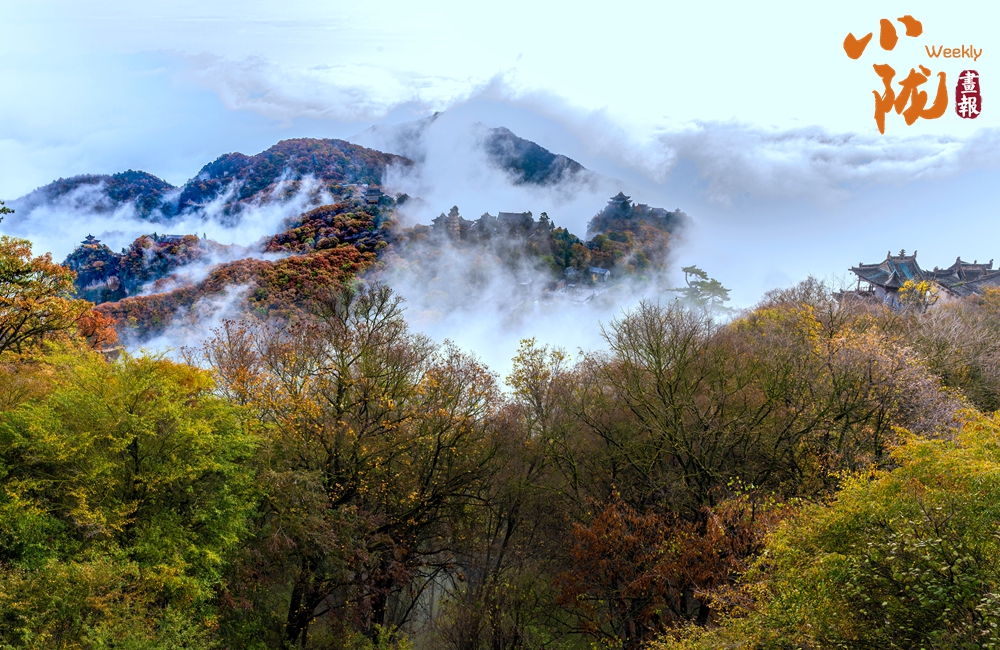 國家5A級旅游景區(qū)平?jīng)鲠轻忌?,四季風(fēng)景各有不同,尤其到了初冬時節(jié),漫山彩林中藏著古剎宮觀,別有一番意蘊。
