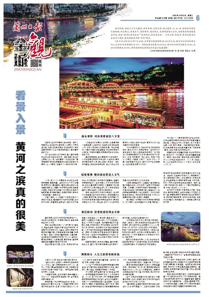 今年國慶假期,以中山橋、金城關(guān)·黃河古渡為代表的多個(gè)景區(qū)、景點(diǎn)游客量開啟“井噴”模式。僅10月1日至3日,全市累計(jì)接待游客超220萬人次,實(shí)現(xiàn)旅游消費(fèi)超12億元,兩項(xiàng)指標(biāo)均超歷史峰值。