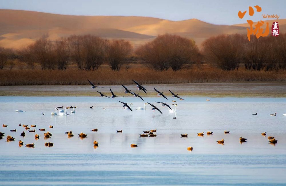 鳥類是濕地生態(tài)系統(tǒng)中最活躍、最引人注目的組成部分,也是監(jiān)測(cè)濕地生態(tài)狀況變化的一項(xiàng)客觀生物指標(biāo)。近年來,張掖國家濕地公園生態(tài)得到持續(xù)改善,使得濕地動(dòng)物明顯增加,黑鸛、大天鵝、熊貓鴨、大白鷺等都是濕地公園的???,構(gòu)成祁連山下田野村莊一道亮麗風(fēng)景。