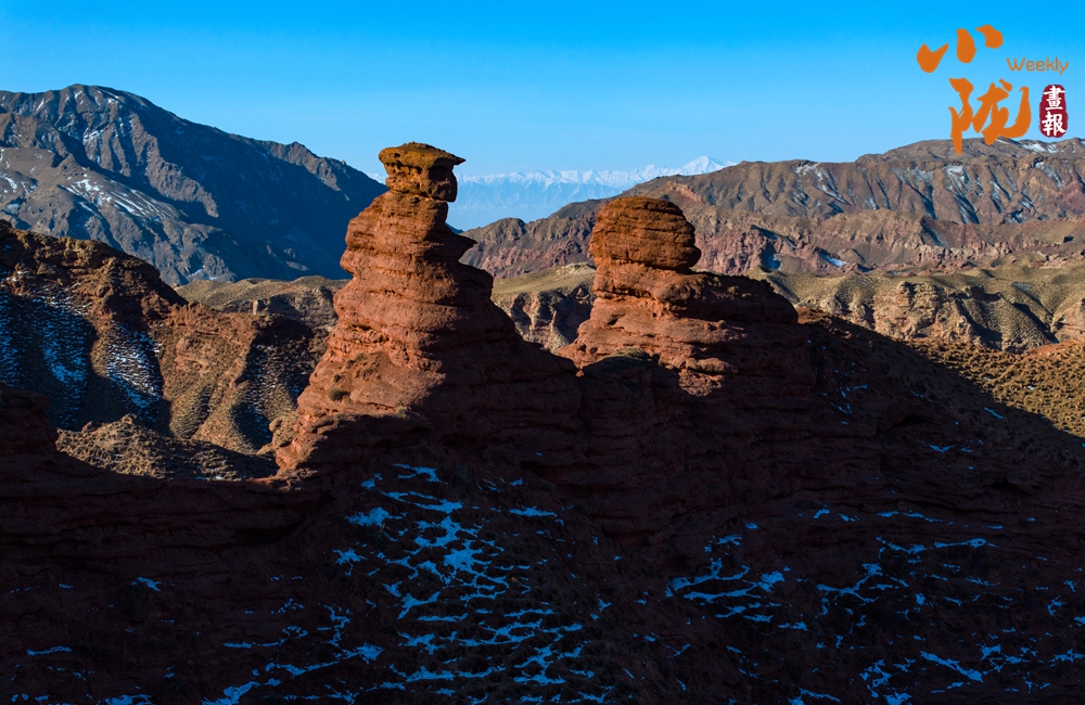 紅色丹霞被春雪覆蓋,在陽光的照耀下,紅色山崖層層疊疊、縱橫交錯,皚皚白雪點(diǎn)綴其中,唯美壯觀。平山湖的山,就在這樣悄無聲息的雪中,幻化成了氣勢磅礴的丹霞,綿延千里,浩瀚無邊。