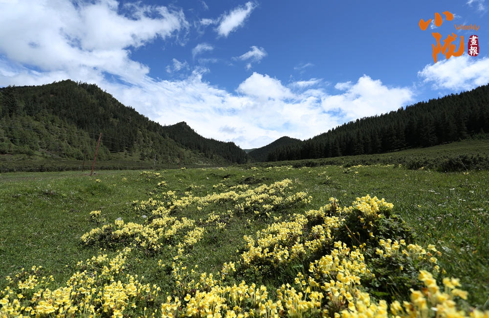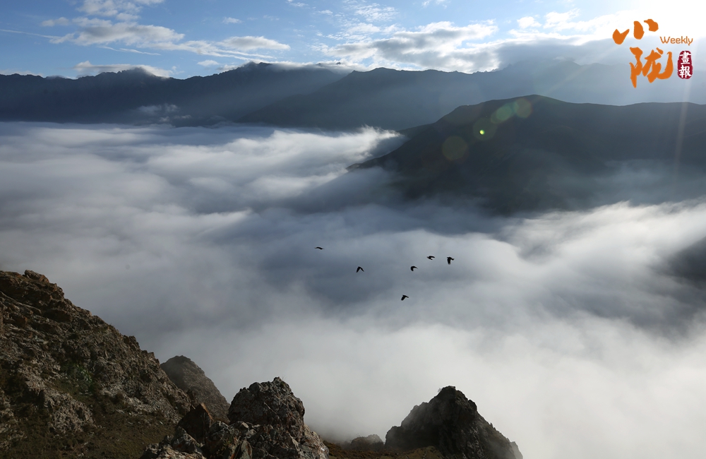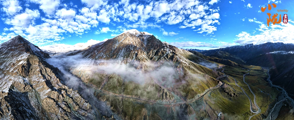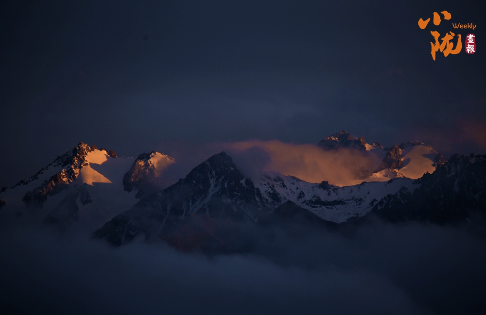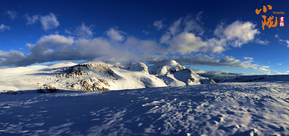 側目而視,近日一場降雪和夏日閑云相伴相依,近處的雪和遠處的云相映成趣,共同把天空擦拭得深藍如鏡。這種“積雪長留峰素裹,浮云飄忽去無邊”的夢幻景色,會將你平日里積蓄在心頭的那些世俗凡塵濯洗得干干凈凈,有一種遠離人世的幻覺。