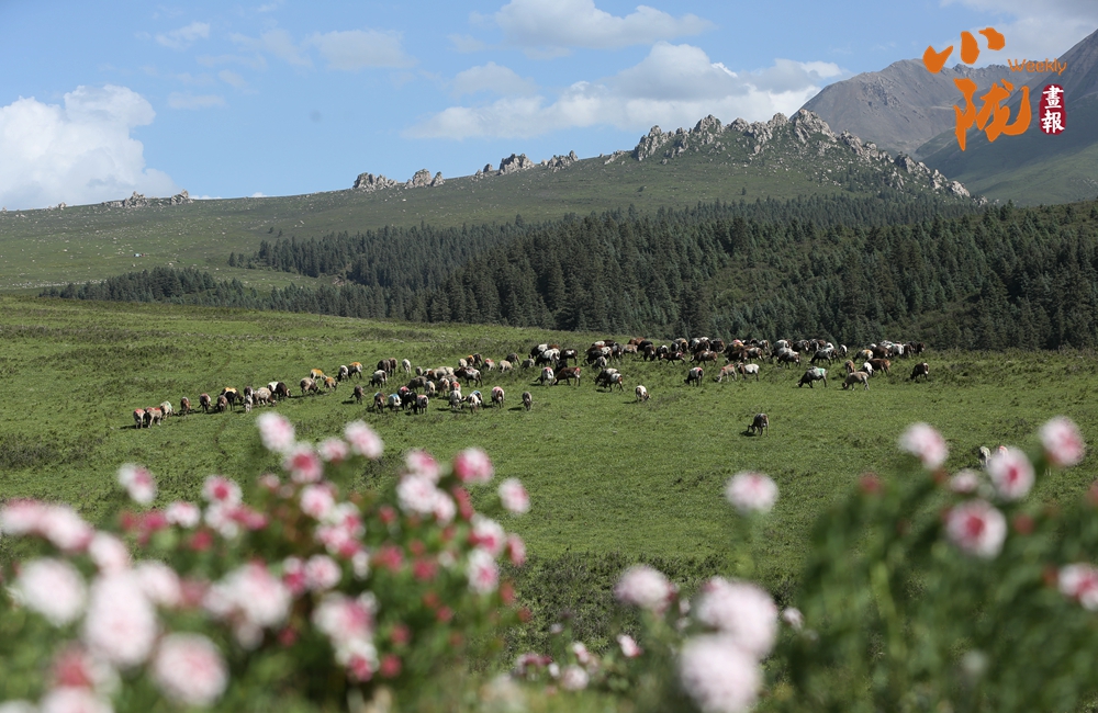 初夏時節(jié),祁連山國家公園張掖肅南縣境內,天空湛藍如洗,草原碧綠廣闊,巍峨的雪山仿佛插入云端,牛羊在青草中覓食,勾勒出一幅天然秀麗的生態(tài)畫卷。