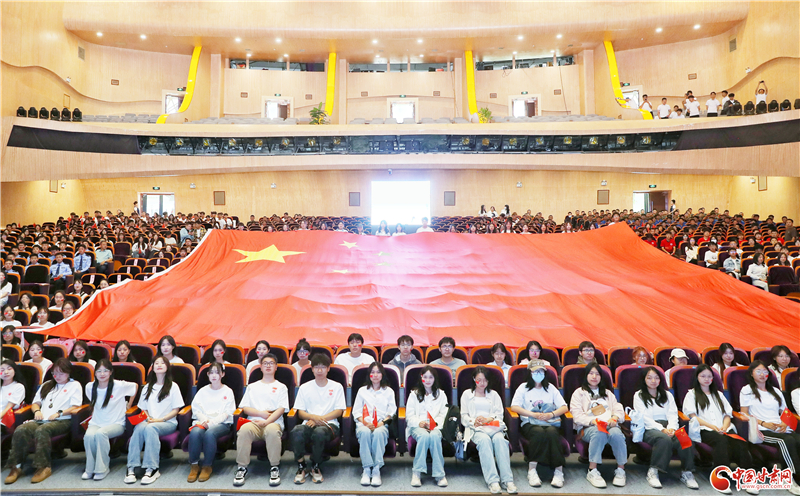 伴隨著震撼的誓言,一面巨大的五星紅旗從會(huì)場(chǎng)后方徐徐展開,幾乎鋪滿整個(gè)會(huì)場(chǎng),“扎根西部、報(bào)效祖國(guó)”的豪情與壯志在現(xiàn)場(chǎng)涌動(dòng)。