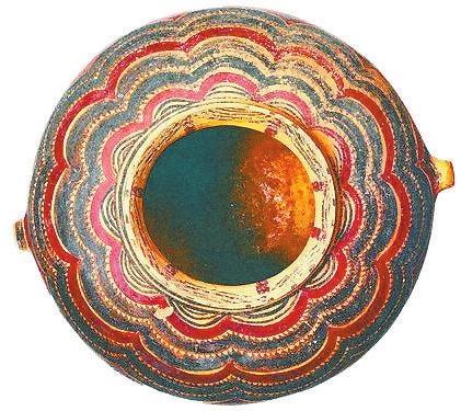 其中以馬家窯文化彩陶為代表,蘊(yùn)含著眾多神秘的社會文化信息,以線條作為造型手段、以黑色(墨色)作為主要基調(diào),奠定了中國畫發(fā)展的歷史基礎(chǔ)與以線描為特征的基本形式。馬家窯文化彩陶也是中國音樂舞蹈的開端呈現(xiàn)。1973年,甘青地區(qū)大通縣出土的馬家窯文化彩陶舞蹈紋盆,內(nèi)壁繪舞蹈人物3組,每組5人,令人感受到遠(yuǎn)古舞蹈強(qiáng)烈的節(jié)奏感。1991年,甘肅武威市發(fā)現(xiàn)的彩陶舞蹈紋盆,內(nèi)壁繪有兩組手拉手的舞蹈人物,每組9人,舞蹈人數(shù)更多。1995年,宗日遺址再次出土一件馬家窯文化彩繪舞蹈紋盆,內(nèi)壁所繪舞蹈人物兩組,分別為11人和13人,給人一種優(yōu)雅的舞蹈意境。1986年,甘肅省永登縣出土馬家窯文化的彩陶鼓。這些珍貴的彩陶器物成為研究中國原始歌舞和音樂起源的佐證。