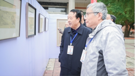 學(xué)校領(lǐng)導(dǎo)陪同畫(huà)家們觀展