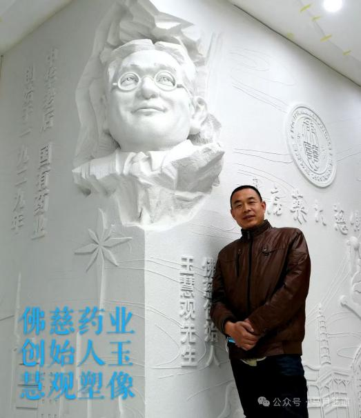 2020年所作,巧妙融圓雕與浮雕于一體,在轉(zhuǎn)角處營造頭像破壁而出的視覺詩意。分體制作,嚴(yán)絲合縫,最終以真石漆噴砂成色,莊重中見靈動(dòng),至今仍是馬先生時(shí)常駐足回望的滿意之作。