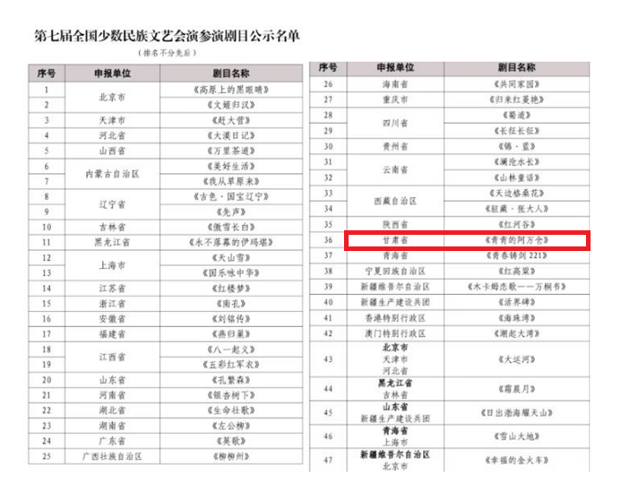 近日,國家民委正式發(fā)布《第七屆全國少數(shù)民族文藝會演參演劇目公示名單》。經(jīng)嚴格遴選與層層審核,由甘肅省委宣傳部、省委統(tǒng)戰(zhàn)部指導,省民委、省文旅廳、省文聯(lián)、省衛(wèi)健委、甘肅演藝集團聯(lián)合出品,甘肅省話劇院傾力創(chuàng)排演出的話劇《青青的阿萬倉》成功入圍。