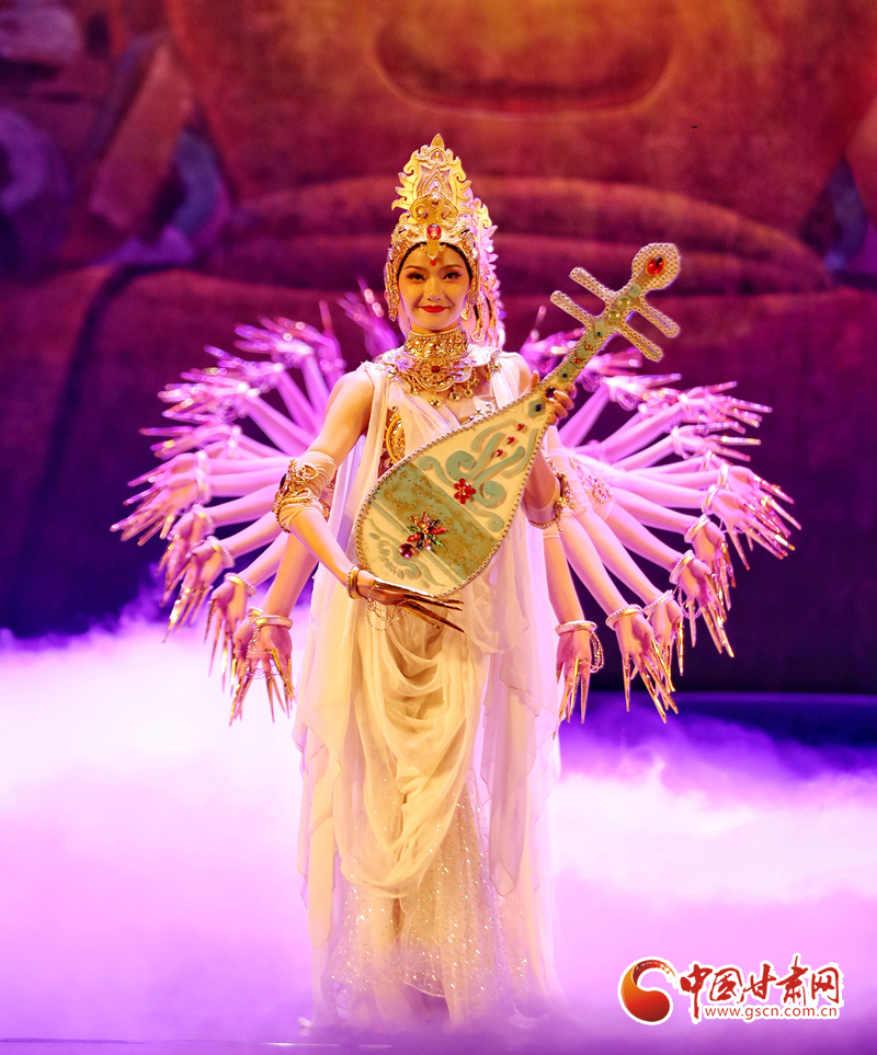 絲路漫漫、駝鈴聲聲……演出當晚,演員們以精湛投入的表演,唱響了絲綢之路的友誼贊歌,同時也為觀眾展開了一幅“活的敦煌壁畫”,從敦煌彩塑和壁畫中提煉出的“千手觀音”“反彈琵琶”“憑欄仙女舞”“霓裳羽衣舞”等舞蹈在舞臺上一一呈現,深深打動了現場觀眾,贏得無數掌聲與喝彩。