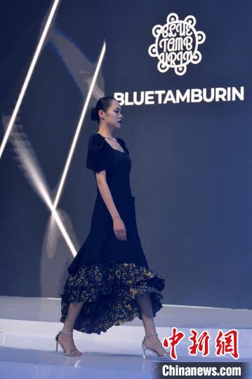 韓國(guó)設(shè)計(jì)師品牌BLUETAMBURIN進(jìn)行壓軸秀。 王海濱 攝