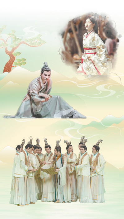 圖片從上至下依次為綜藝節(jié)目《舞千年》劇照、國風(fēng)舞蹈《紙扇書生》《孔子》劇照。  制圖:趙偲汝