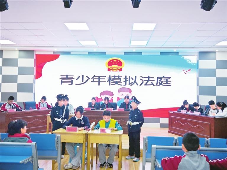首先,在李青源律師的悉心指導和同學們的踴躍參與下,經過前期的認真彩排,同學們以模擬法庭的形式現(xiàn)場模擬了一起因校園欺凌導致的刑事訴訟案件。參與庭審活動的學生們沉浸式、體驗式、互動式參與其中,有序扮演著審判長、公訴人、辯護人等角色?;顒右沧屧趫龅钠渌瑢W認識學習了法庭審判的全過程,身臨其境感受了校園欺凌會產生的嚴重后果,以及法律的威嚴,引導青少年學會用法律保護自己。